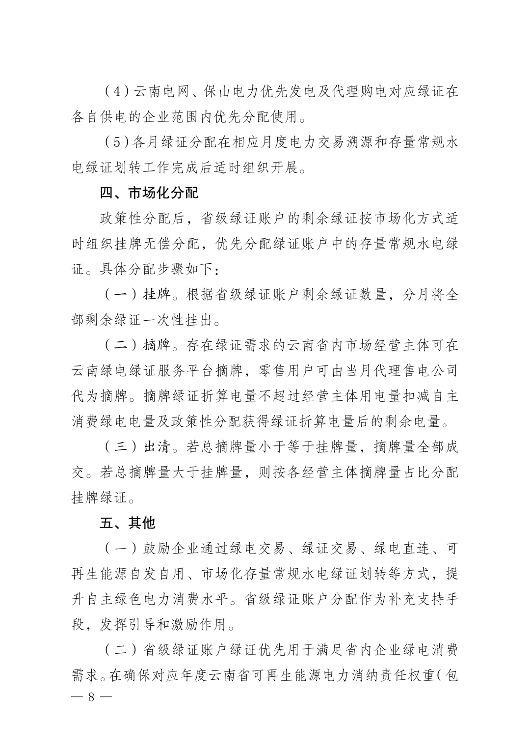 · 2、《云南省存量常规水电绿证划转方案(试行)》明确划转至省级绿证账户的存量常规水电绿证;