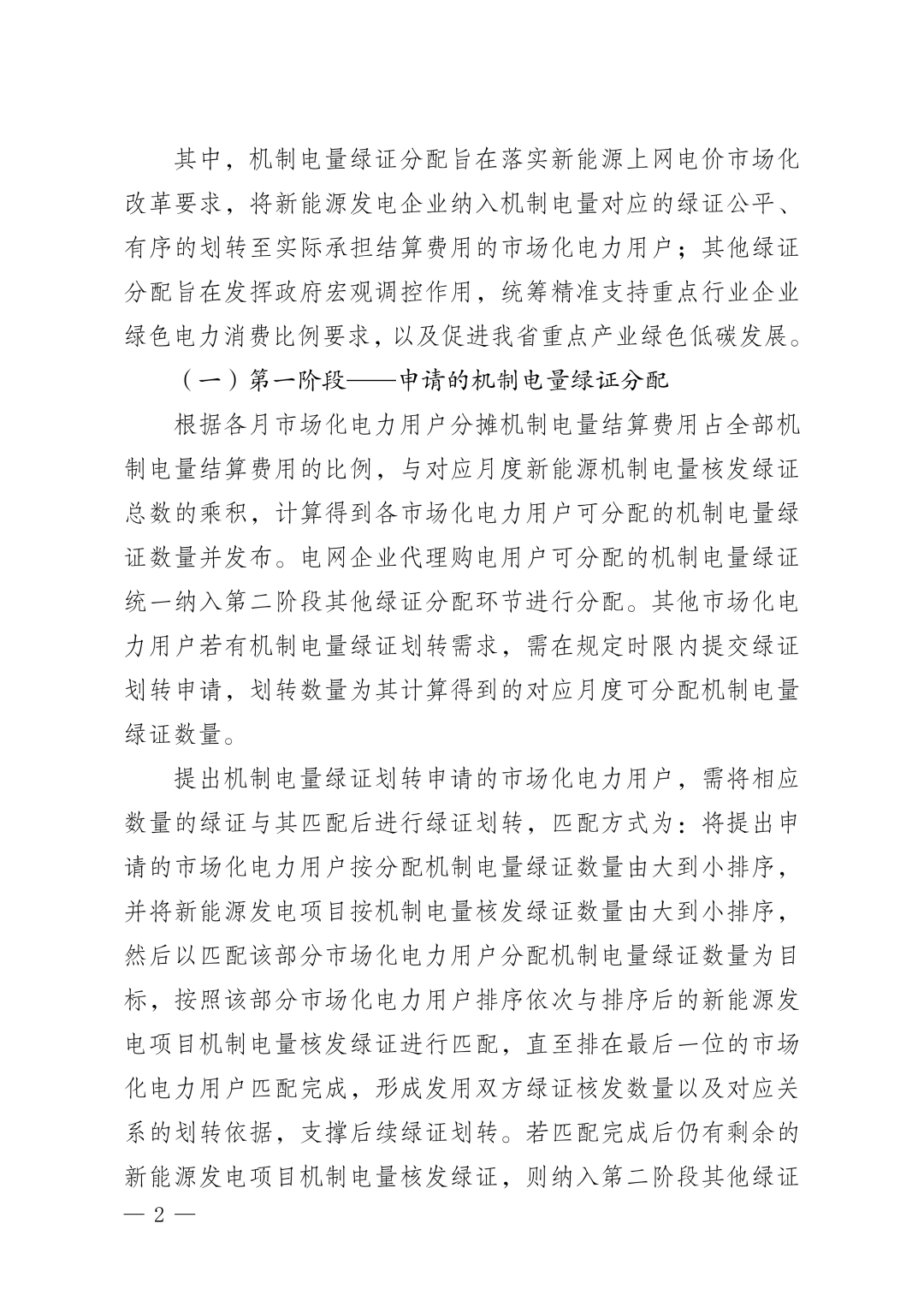 第一阶段是针对机制电量绿证分配,分配对象为市场化电力用户,其中“电网代理购电用户“统一纳入第二阶段其他绿证环节进行分配。